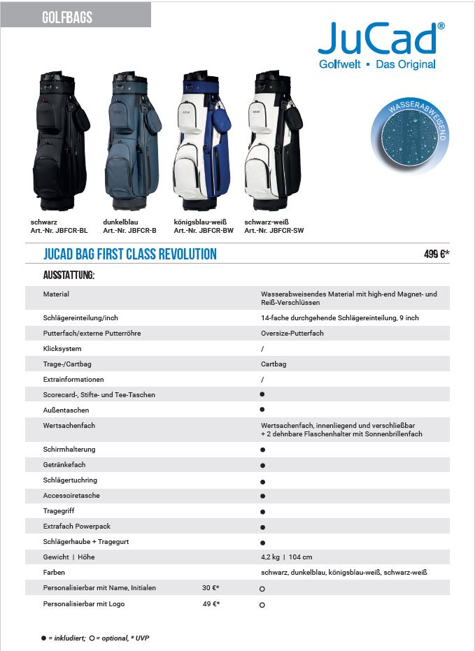- JuCad/JuStar Golfbags, JuCad, Zubehör