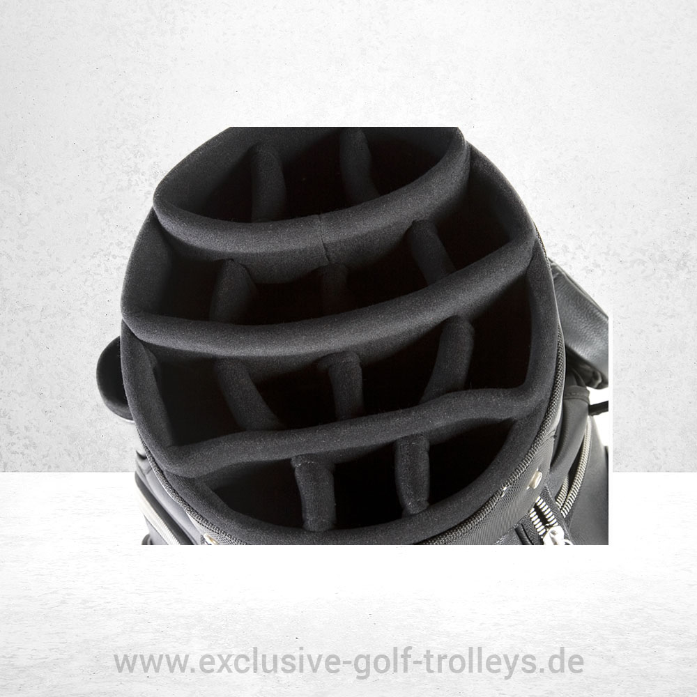 Eine durchgehende 14-fache Schlägereinteilung, eine extra große Putterröhre und ein Kühlfach machen das 9 inch Golfbag zu einem funktionellen