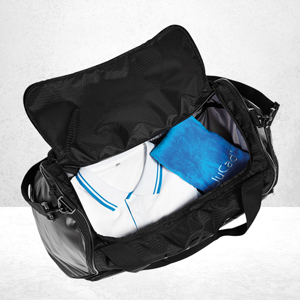 Die superleichte JuCad Sporttasche im sportlichen Wabenlook ist der praktische Begleiter für Ihr Training.