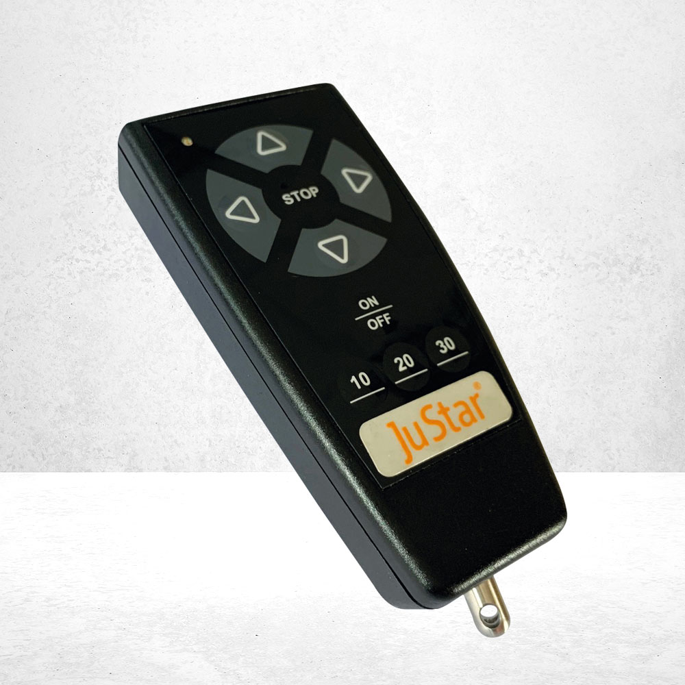 JuStar Fernsteuerung; sie ist mit übersichtlichen, leicht bedienbaren Tasten ausgestattet, die sich einfach und von selbst erklären.
