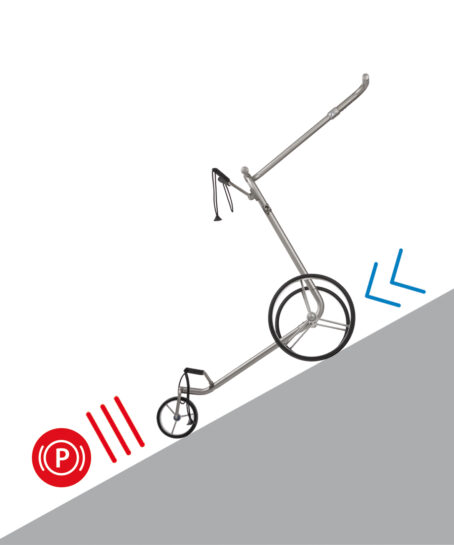 Nur bei Neukauf eines JuStar Golftrolley ist eine elektronische Parkbremse, zusätzlich zur serienmäßigen Bergbremse,