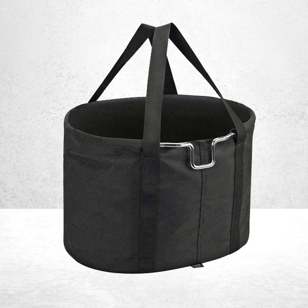 Aus robustem Gewebe, mit Bodenverstärkung, verchromtem Stahlbügel und breiten Tragegurten.